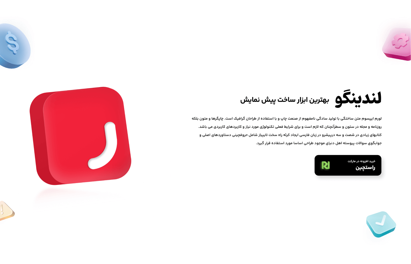 با لندینگو، بدون دانش فنی لندینگ پیجهای جذاب بساز! این قالب به لطف طراحی مدرن و امکانات سفارشیسازی بالا، تجربهای راحت و حرفهای رو بهت میده. لندینگو از لحاظ فنی هم یه انتخاب فوقالعادهست! سرعت عالی، کدنویسی تمیز و بهینهسازی سئویی، باعث شده که صفحات ساختهشده با این قالب، بهترین عملکرد رو داشته باشن.💪
